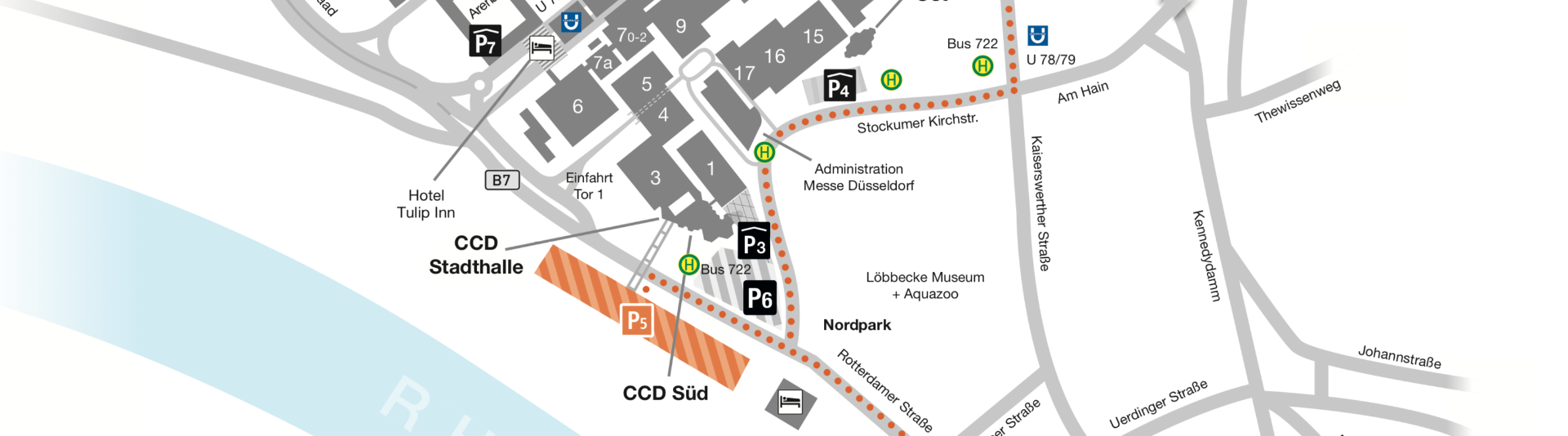 CCD Stadthalle, CCD Süd oder CCD Ost bzw. den Parkplatzausschilderungen
